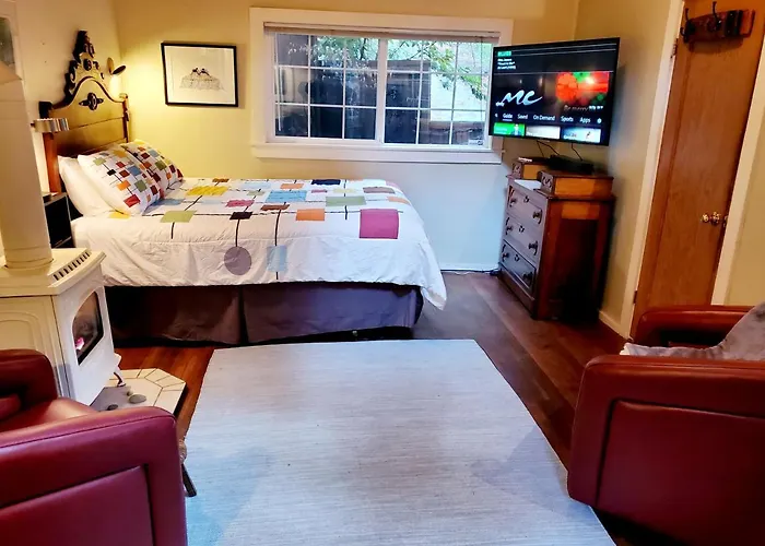 Eine Küchenzeile mit einer Mikrowelle, einem Wasserkocher und einem Kühlschrank gehört zur Ausstattung dieser Villa für Selbstversorger. Mexikanische Gerichte können Sie im Restaurant Guerneville taco truck genießen, das etwa 600 Meter von hier entfernt liegt. Der Flughafen Charles M. Schulz - Sonoma County ist in 33 Minuten mit dem Auto zu erreichen.